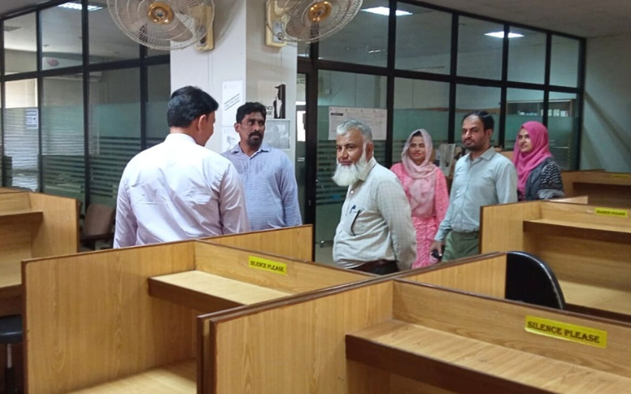 Assessment Team (AT) comprised of Dr. Zeeshan Akhtar (Associate Professor), Department of Applied Chemistry and Chemical Technology, University of Karachi, an external evaluator, and Dr. Zulfiqar Ali Raza (Associate Professor), Department of Applied Sciences, National Textile University, Faisalabad evaluated the BS Polymer and Textile Chemistry Program according to Self-Assessment Criteria outlined in the HEC Self-Assessment Manual and recommended improvements were communicated during the exit meeting with Prof. Dr. Khalid Pasha, Director, Karachi Campus, attended by Mr. Muhammad Ayaz Shaikh, Deputy Director, QEC, and Dr. Muhammad Ayyoob, Chairman, Department of Textile and Clothing.