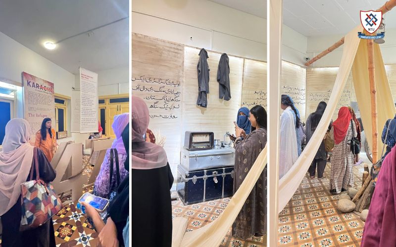 During the visit, students toured the exhibition titled “From Borders to Belongings: Karachi’s Journey of Migration”, which beautifully highlights how the city has evolved through a remarkable history of movement, resilience, and diversity. The exhibition offered a meaningful understanding of Karachi’s identity, shaped by the stories and contributions of its diverse communities.