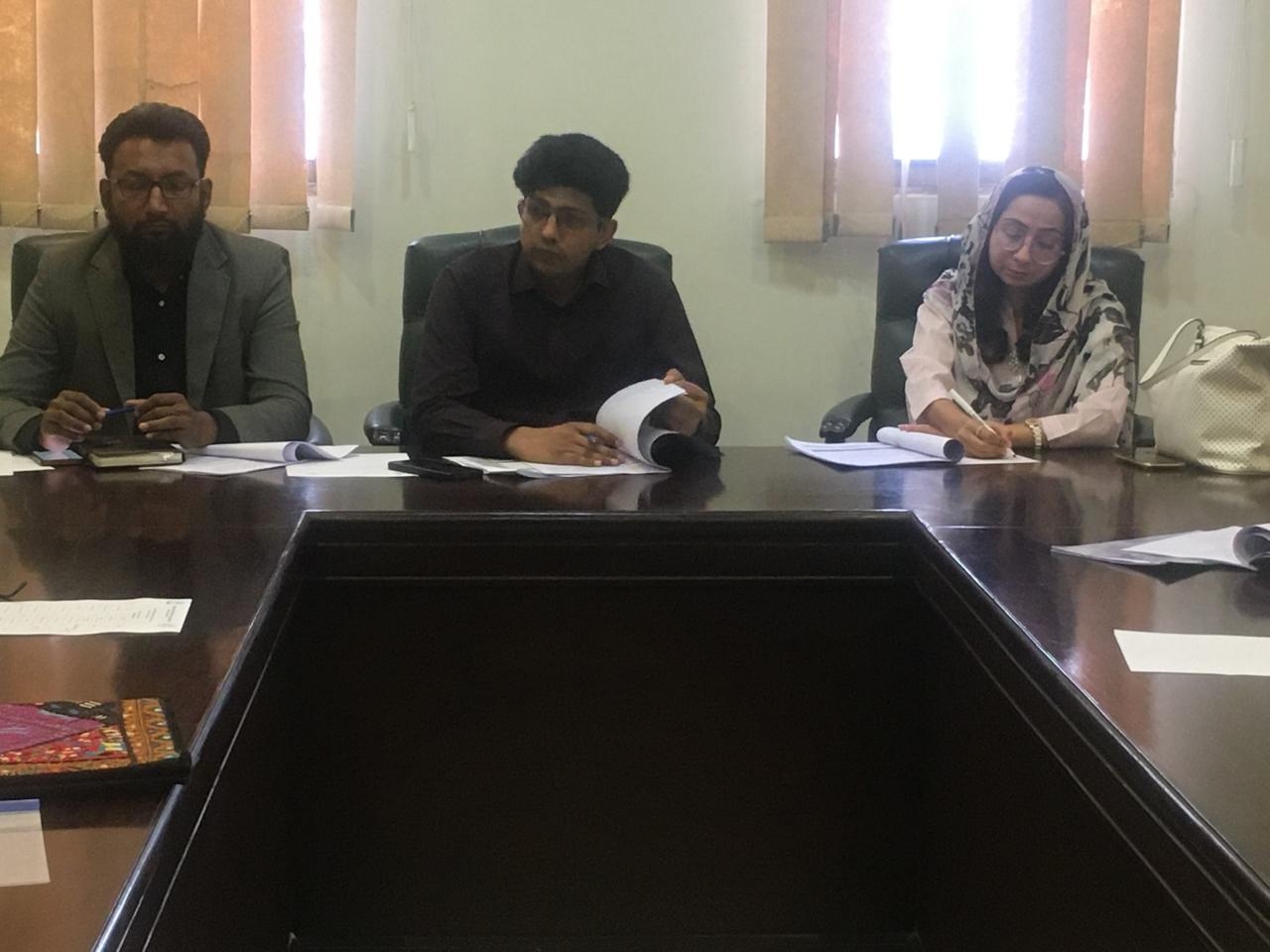 Quality Enhancement Cell (QEC) of National Textile University (NTU) has completed the Self-Assessment Process for Bachelor of Textile Design. The meeting was held on April 30, 2024 in the meeting room of NTU. The Assessment Team (AT) comprised of Dr. Muhammad Hashim, Associate Professor, Faisalabad Business School, Convener of AT, Dr. Muhammad Mushtaq, Assistant Professor, School of Arts & Design and Ms. Mubarra Rafiq, Lectuer, School of Arts & Design. Assessment Team evaluated the program according to HEC’s prescribed Self-Assessment Criteria and recommended improvements accordingly.