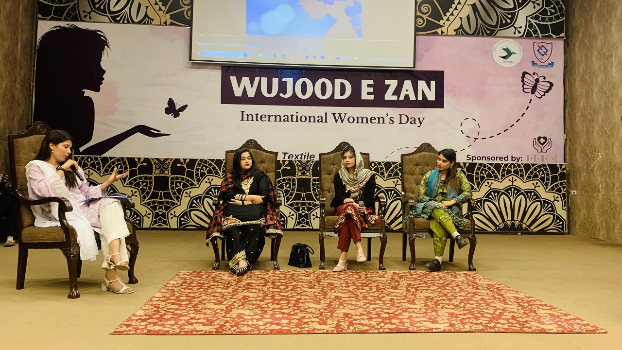 On the culminating day of the 'Wujood-e-Zan' event, March 7th, engaging open mic discussion and inspiring panel session marked the celebration of womanhood and empowerment. The day commenced with enthusiastic participation from university students, who passionately shared their perspectives and experiences on various topics relevant to women's empowerment. Following this lively exchange, a distinguished panel comprising three accomplished women leaders took the stage to share their insights and stories of triumph. Their wisdom and guidance served to inspire the audience, igniting a sense of hope and determination among attendees. With each speaker offering unique perspectives and invaluable advice, the panel discussion proved to be a resounding success, leaving a lasting impact on all those in attendance.