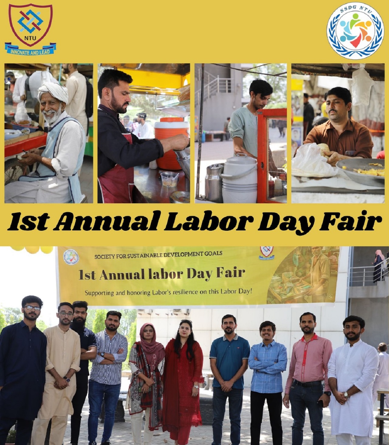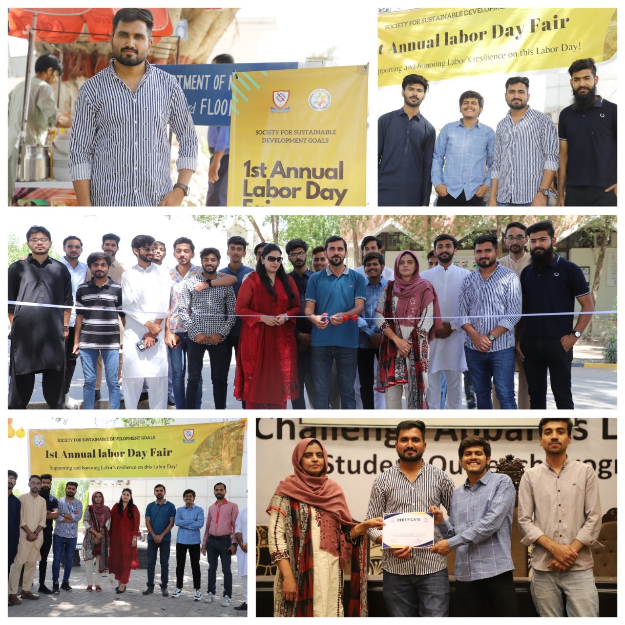 On May 1, 2024, the "1st Annual Labor Day Fair" was arranged by the Society for Sustainable Development Goals (SSDG) in collaboration with YDC and supervised by Convener Dr. Faiza Anjum. The fair was inaugurated by Dr. Khubab Shaker, Assistant Professor and Chairman, and Ms. Nadia Shamim, Assistant Director of Student Affairs. The fair aimed to celebrate and support local laborers, daily wagers, and street hawkers by providing them with a platform to showcase their products and services on the university campus. This initiative aimed to assist their financial stability and promote the achievement of several Sustainable Development Goals, including No Poverty (SDG-1), Decent Work and Economic Growth (SDG-8), Reduced Inequalities (SDG-10), and Sustainable Cities and Communities (SDG-11), in line with the university’s commitment to social responsibility and community engagement.
