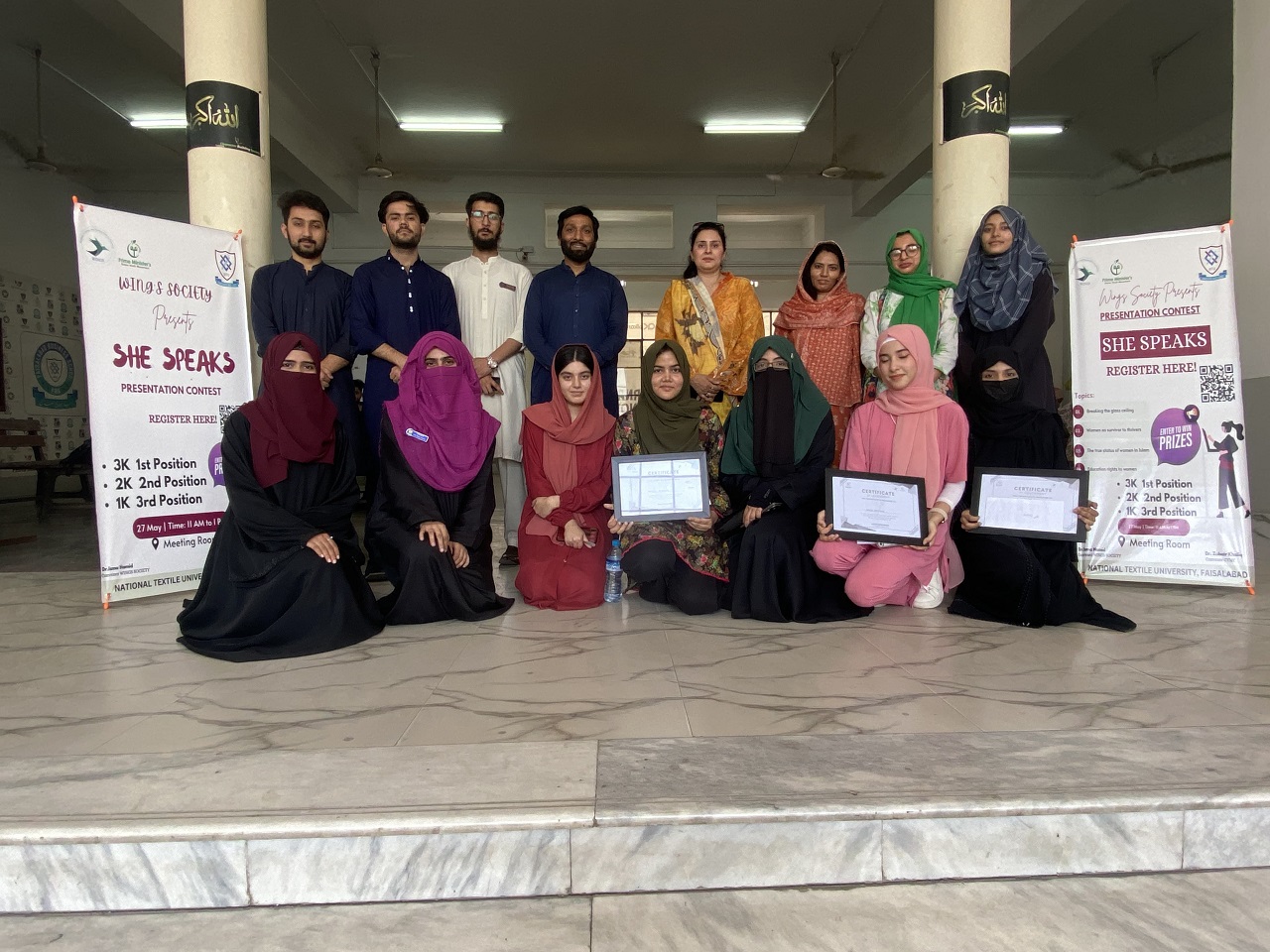 The event was judged by Dr. Waseem Hassan, who awarded first place to Noor Mustafa, second place to Hafiza Minahil, and third place to Noor Khan Yasin. The winners received cash prizes of Rs 3000, Rs 2000, and Rs 1000, respectively, recognizing their outstanding presentations by Ms Nadia Shamim Asst. Director Students Affairs.