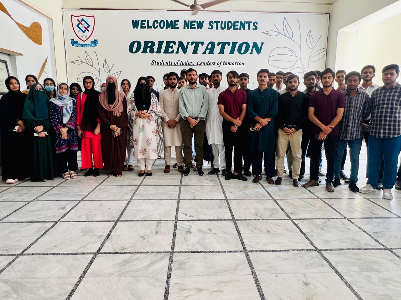 Dr. Rashid Masood Professor / Chairman School of Engineering & Textile gave a warm welcome to students and parents into the entirely holistic education system of NTU. Further, he explained to the students about university rules and policies. The student-led campus tour, along with faculty and orientation leaders (OL students), guided new students in learning about the cutting-edge facilities, resources, and services present at National Textile University.