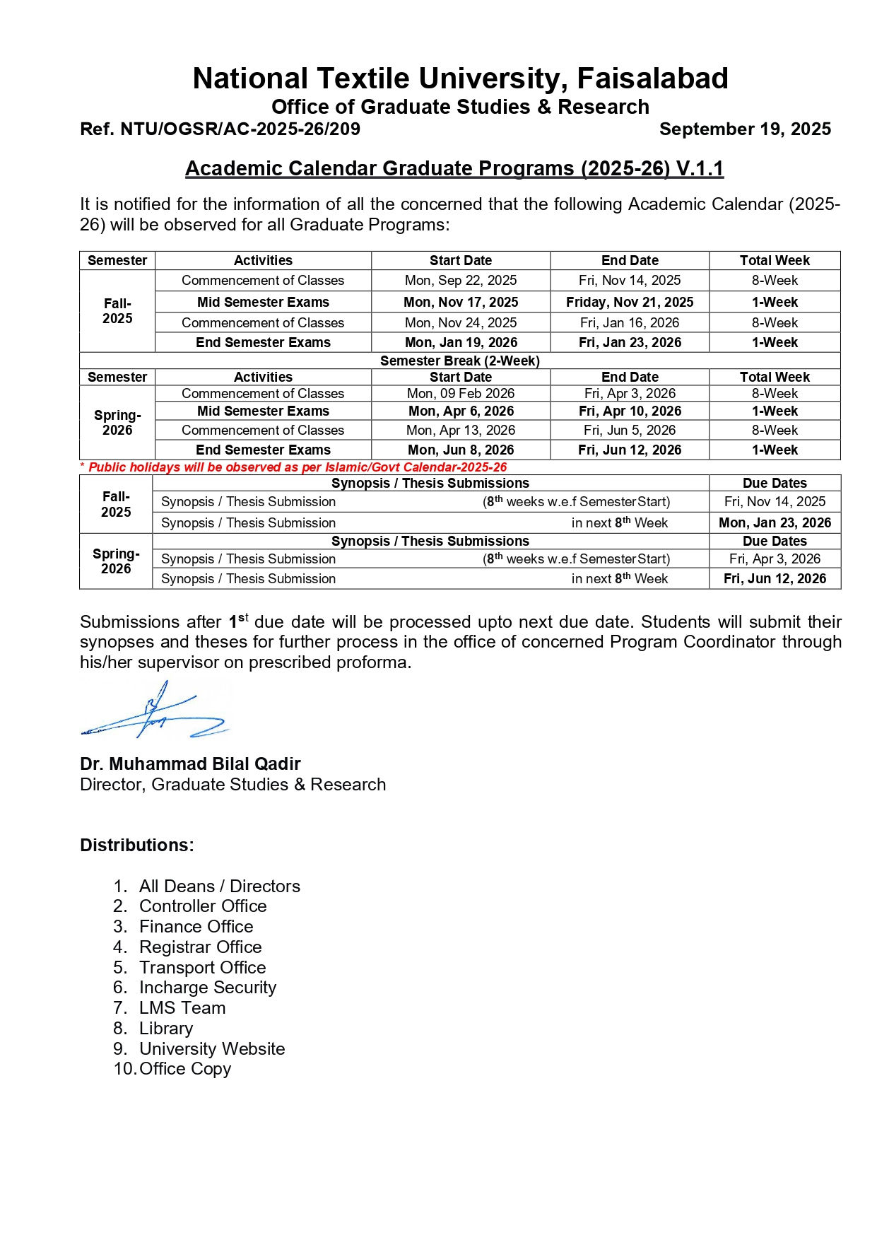 Academic Calendar