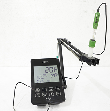 PH meter, electric device used to measure hydrogen-ion activity (acidity or alkalinity) in solution. Fundamentally, a pH meter consists of a voltmeter attached to a pH-responsive electrode and a reference (unvarying) electrode. It also measures dissolve oxygen and Total dissolved solids by changing the electrodes in water samples |
