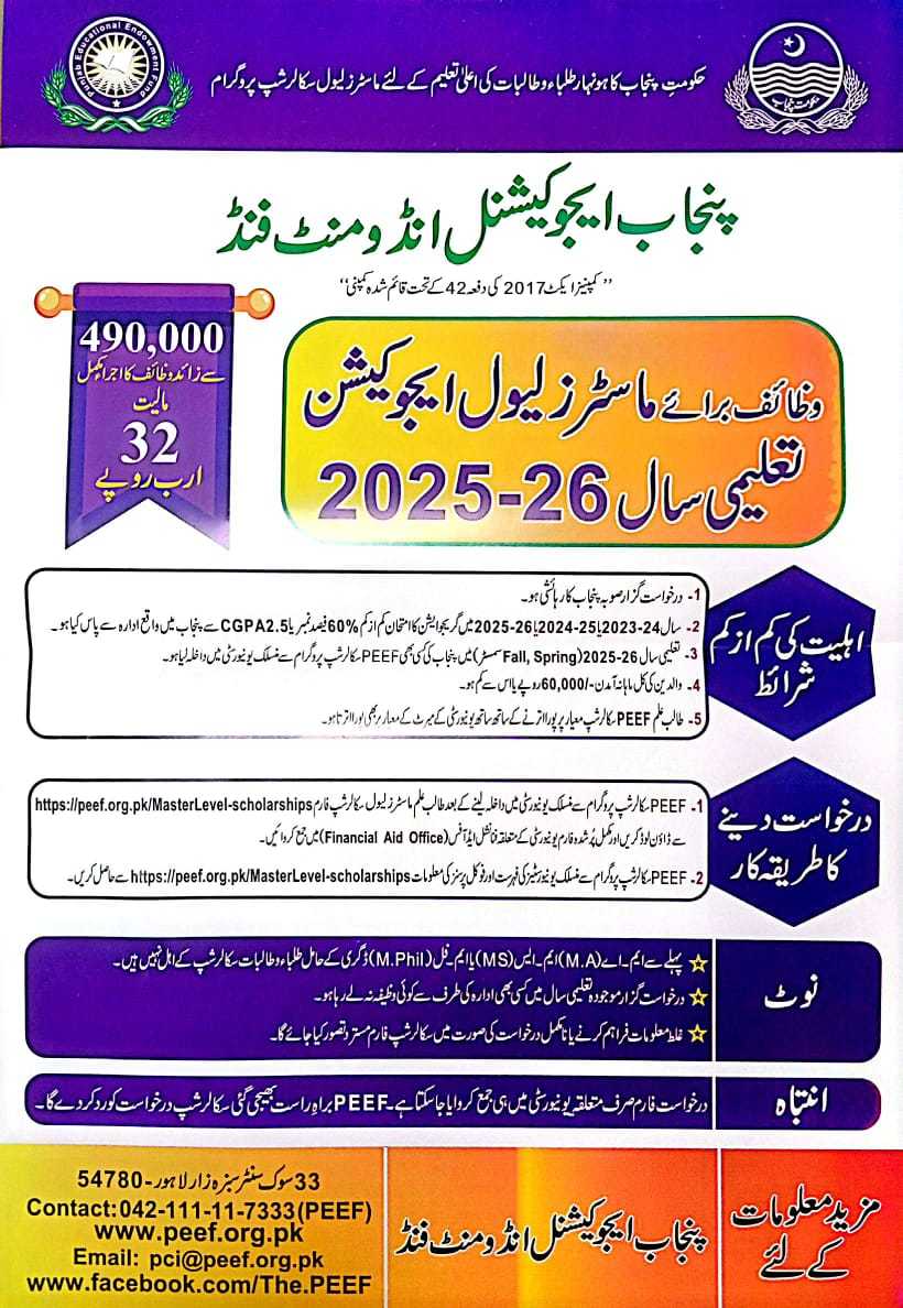 PEEF Master's Level Scholarship Quota (2025-26) - Intake Fall-2025 Only