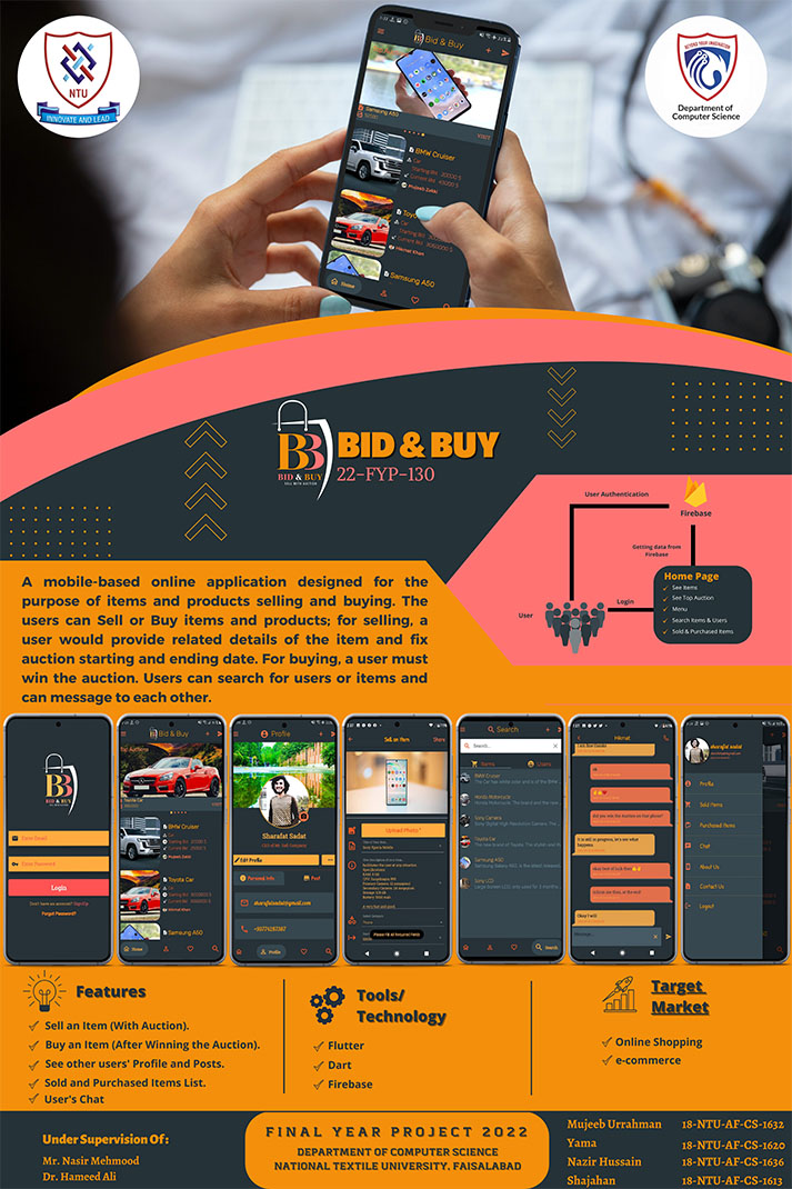 A mobile-based online applocation designed for the purpose of items and products selling and buying.the users can sell or buy items and products;for selling ,a user would provide related details of the item and fix auction starting and ending date.For buying ,a user must win the auction.Users can search for users or items and can message to each others.