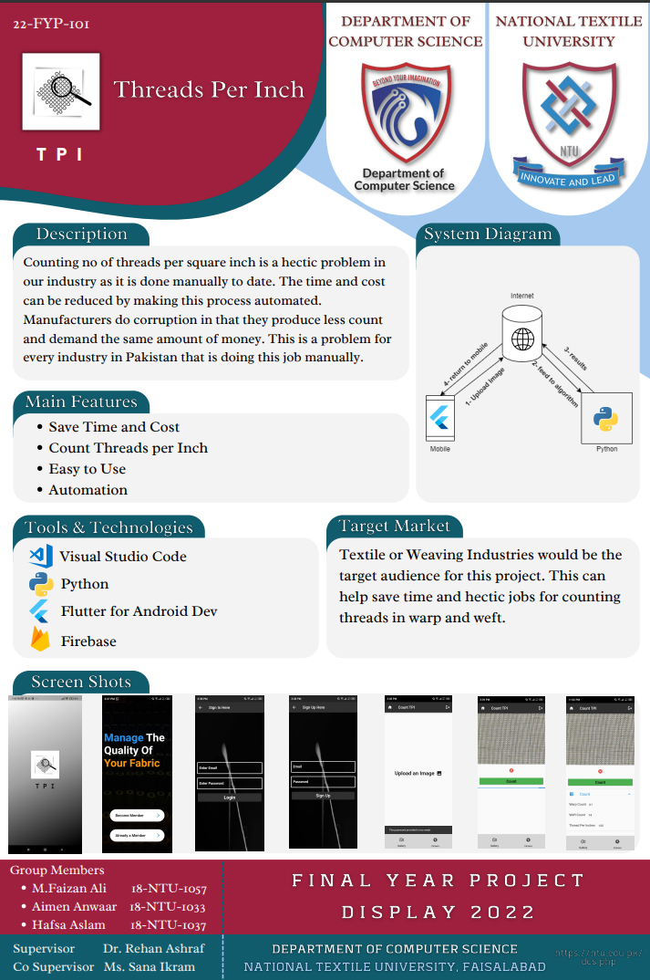 Counting no of threads per square inch is a hectic problem in our industry as it is done manually to date. The time and cost can be reduced by making this process automated. Manufacturers do corruption in that they produce less count and demand the same amount of money. This is a problem for every industry in Pakistan that is doing this job manually.