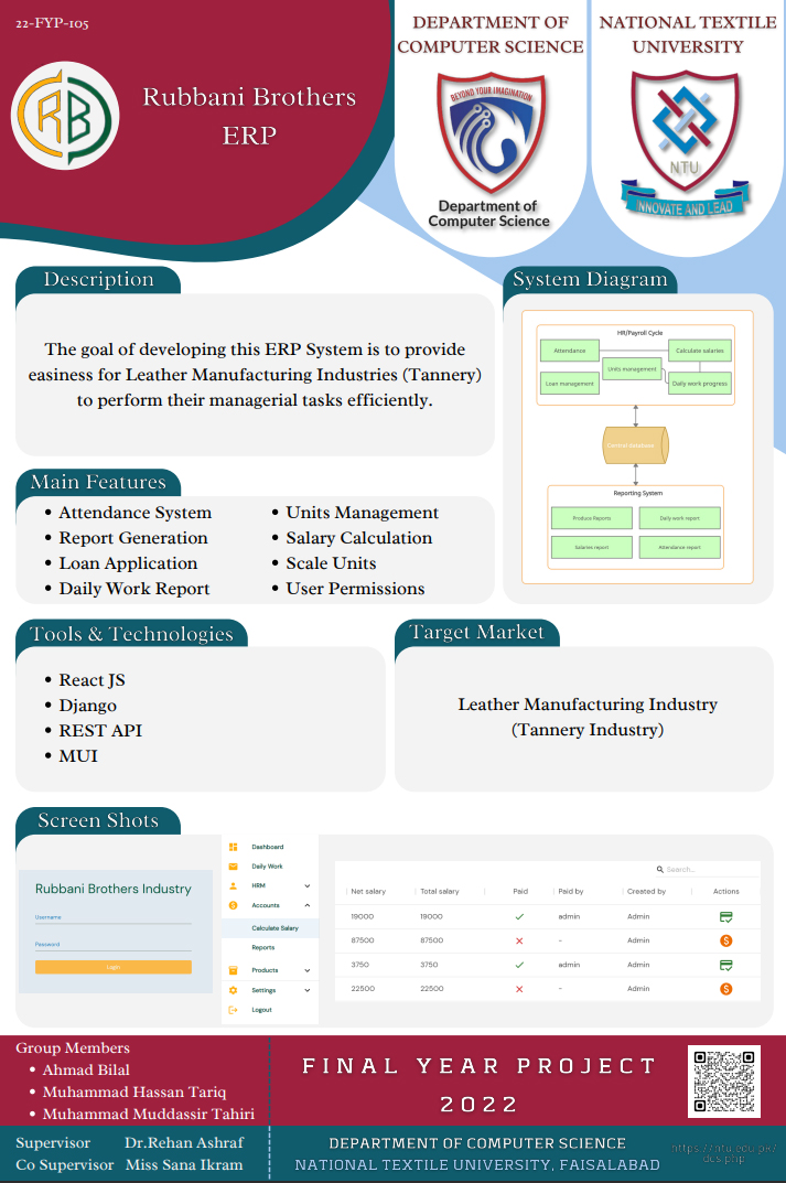 The goal of developing this ERP System is to provide easiness for Leather Manufacturing Industries (Tannery) to perform their managerial tasks efficiently.