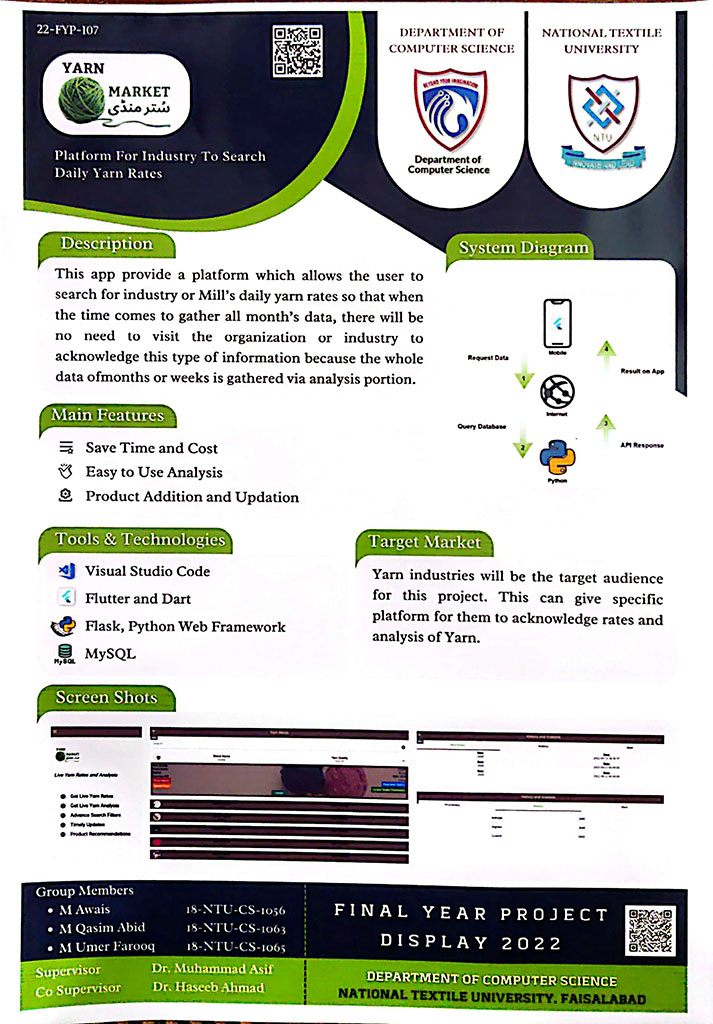 This app provide a platform which allows the user to search for industry or Mill 's daily yarn rates so that when the time comes to gather all months data, there will be no need to visit the organization or industry to acknowledge this type of onformation because the whole data of months or weeks is gathered via analysis portion.