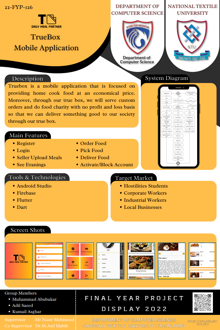 Truebox is a mobile application that is focused on providing home cook food at an economical price. Moreover, through our true box, we will serve custom orders and do food charity with no profit and loss basis so that we can deliver something good to our society through our true box.