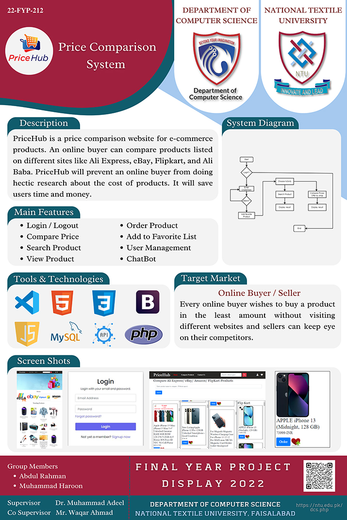 PriceHub is a price comparison website for e-commerce products. An online buyer can compare products listed on different sites like Ali Express, eBay, Flipkart, and Ali Baba. PriceHub will prevent an online buyer from doing hectic research about the cost of products. It will save users time and money.