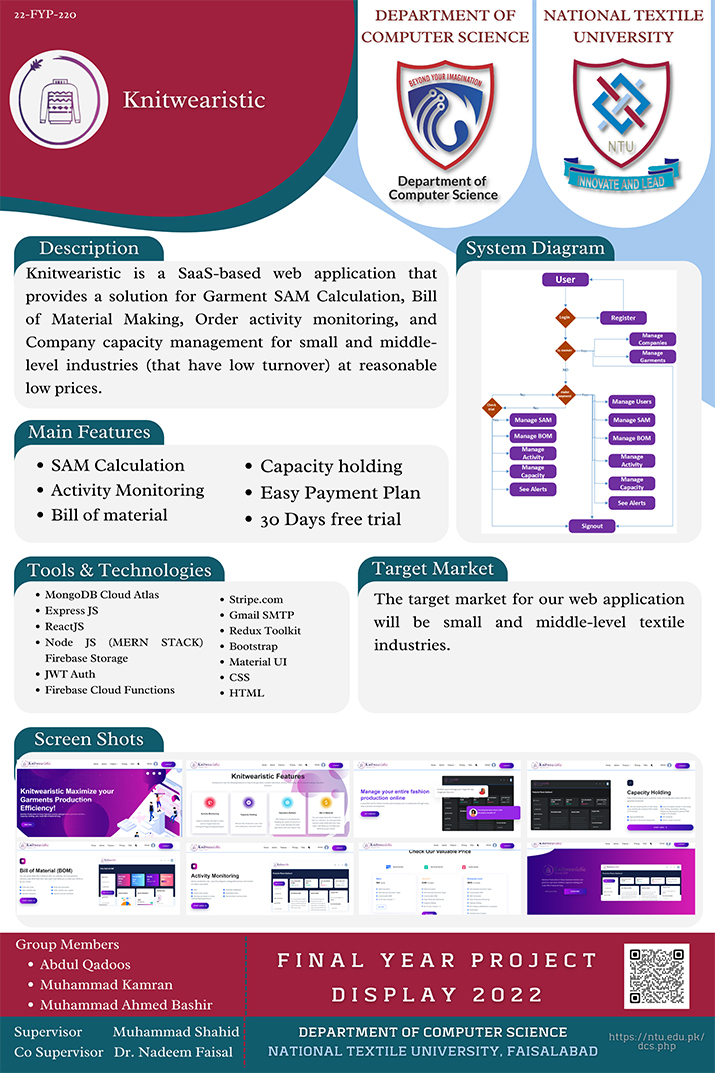 Knitwearistic is a SaaS-based web application that provides a solution for Garment SAM Calculation, Bill of Material Making, Order activity monitoring, and Company capacity management for small and middlelevel industries (that have low turnover) at reasonable low prices.