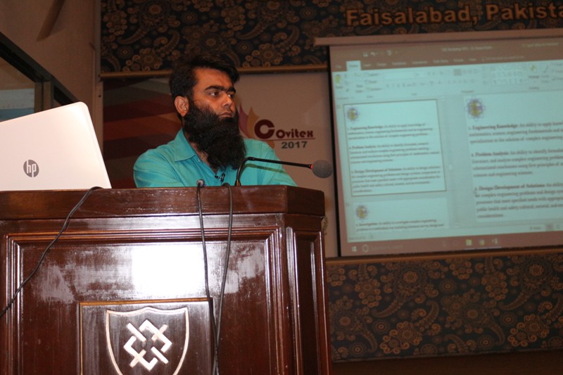 The Associate Professor, Dr. Awais Khatri, Incharge Industrial Liaison, Department of Textile Engineering, Mehran University of Engineering Technology was the “Resource Person / Trainer” for the training workshop and the Rector, Prof. Dr. Tanver Hussain was the “Guest of Honor” of the event. The Rector appreciated the efforts of Director QEC, Mr. Muhammad Nisar Bhatti for organizing such a valuable workshop for the faculty.