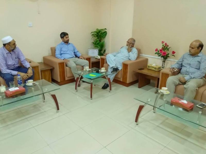 Dr. Syed Saqib Shams: The Chairman of the Department of Polymer Engineering, National Textile University, Karachi Campus met with the Director General, PCSIR to discuss the requirements to promote skilled labour along with the missing academia-industry link in Pakistan. It was mutually agreed that our department will closely work together with Pakistan Council of Scientific and Industrial Research (PCSIR) Karachi to address these areas for future improvements. The followings were also present in this meeting:- L to R: Mr. S. M. Noman (CEO, Al Huda Plastics and Chairman, Pakistan Plastics Manufacturers Association), Dr. S. Saqib Shams (Chairman, Polymer Engineering Department & Director Campus, National Textile University Karachi), Dr. M. Aleem Ahmed (Director General, PCSIR), Mr. Nadeem Gohar (Director, Pak-Swiss Training Center)