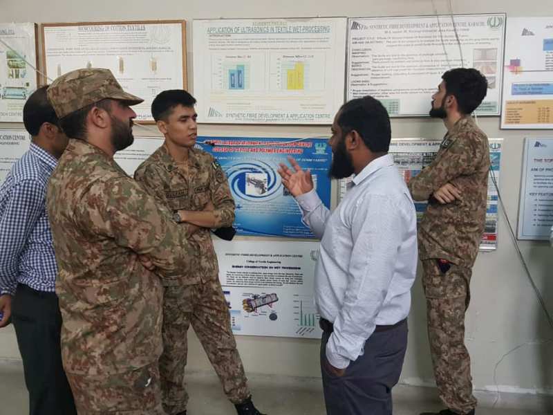 After the class lectures Army Officers visited different departments of Textile & Clothing including complete Melt spinning lab, Yarn Manufacturing, Fabric Manufacturing (weaving & knitting), Textile Processing, Textile Testing and Garment Manufacturing.