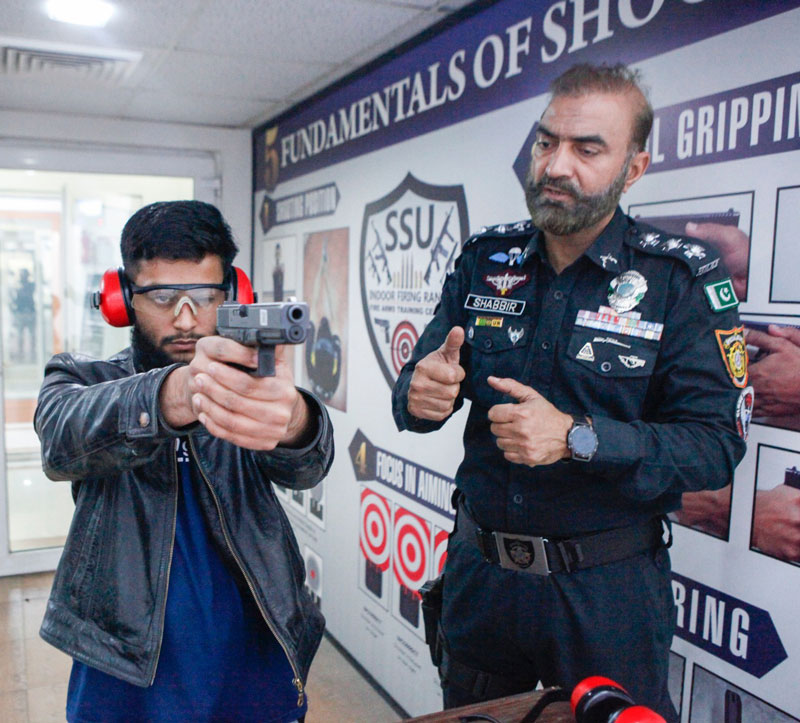 Registrar Office of Karachi Campus in collaboration with Special Security Unit (SSU) Sindh Police organized One day Training Program on Self Defence & Firearms Safety for students and staff of National Textile University Karachi Campus on 13 January, 2021 at SSU Head Quarter. Objective of the program was to provide a practical introduction to firearms through the explanation of gun nomenclature, operations and fundamental shooting skills along with self defence. SSU officials presented practical demonstrations to learn safety, self defence and safe firearm handling techniques. Hands-on training to students and staff of university was also given. Basics of Martial Arts were also the part of the training program. After the completion of the training, certificates were awarded to participants by Mr. Maqsood Memon, DIG (Security & Emergency Services Division).