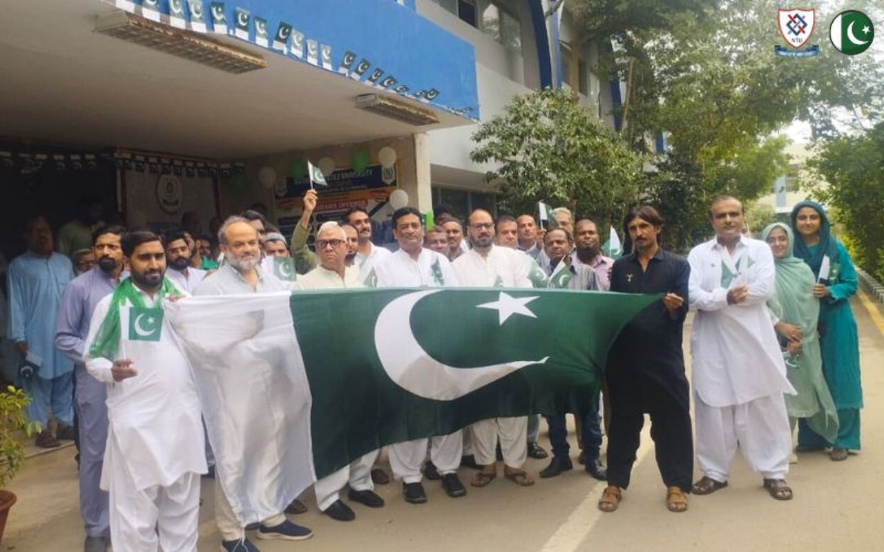 The National Textile University Karachi Campus proudly celebrated the Independence Day of Pakistan and Marka-e-Haq with patriotic zeal and unity. The event brought together the university’s management, faculty, and staff members to honour the nation’s history, the sacrifices of its heroes, and the values they fought to protect.