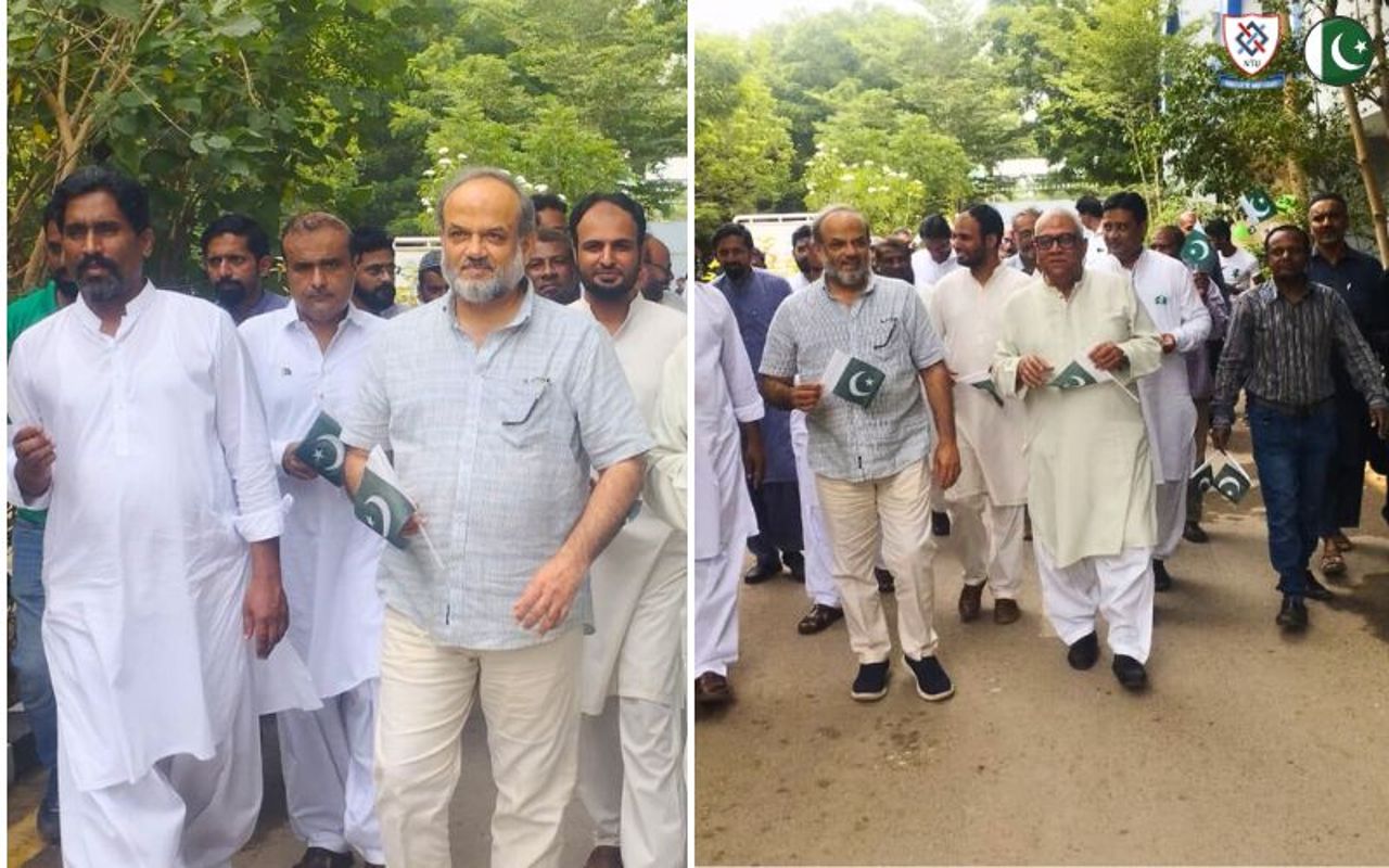 The celebration began with a solidarity walk, symbolizing unity, resilience, and the spirit of freedom. Participants carried the national flag and echoed slogans that reflected the essence of independence and the significance of Marka-e-Haq. The walk was followed by a flag hoisting ceremony, during which the national flag was raised high, accompanied by the singing of the national anthem.
