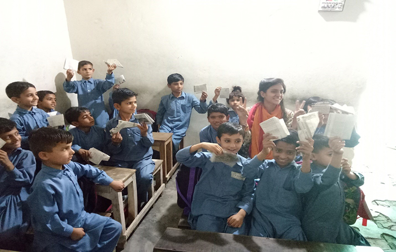 They prepared a drama performance for the school children under the guidance of Sir Ahsan. The performance moral is based on cleanliness, personal hygiene and pollution. NTU students taught paper craft techniques by using waste papers.