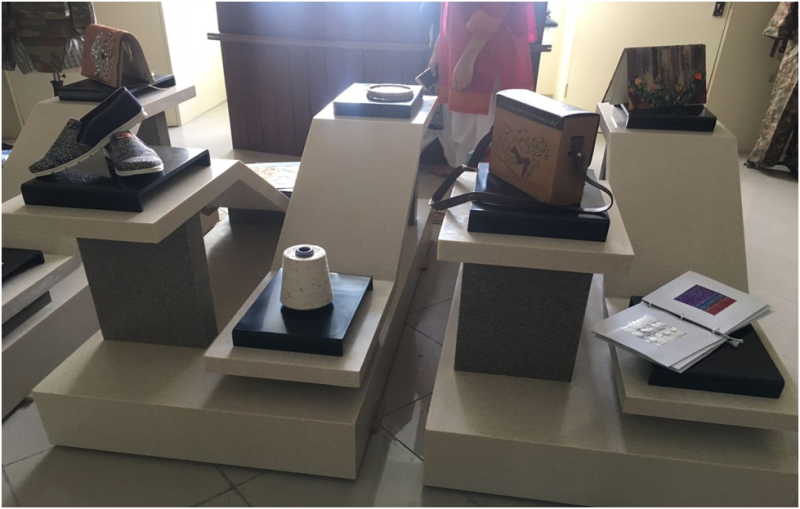 NTU display center is updated with the final projects of Design Department batch 2013-17.The variety of remarkable ideologies, artistic sense and economically measured products are representing the creativity of our future generation. Displayed projects range include ready to wear, couture, chef uniform, hunting gears, wooden hand bags and other apparel products made from eco-friendly yarns.