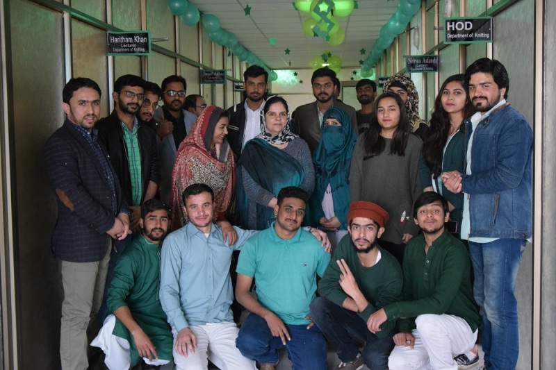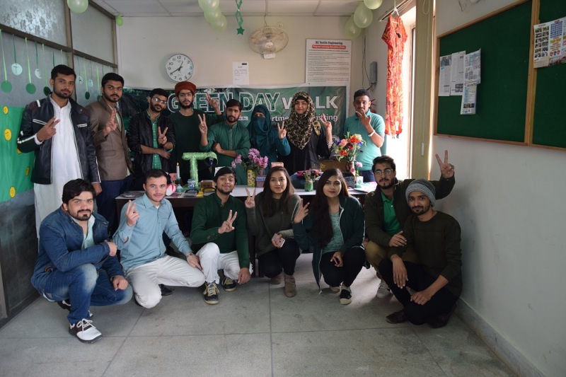 We have a moral responsibility to protect the earth and ensure that our children and grandchildren have a healthy and sustainable environment to live. All the life forms on Earth have the right to live. By destroying nature, we are denying the life forms this right. This act is unjust and unethical. It is therefore imperative to study relationship with human beings and non human contents, called environmental ethics. To promote "Every day should be a green day and protecting environment is our moral duty", students of Seventh Semester, studying Environmental Issues Related to Textile, organized a "Green Day". They displayed recycled products and arranged a walk in campus to give awareness to the rest of the students. Chairperson Dr. Hafsa Jamshaid and other faculty members also participated in awareness walk.