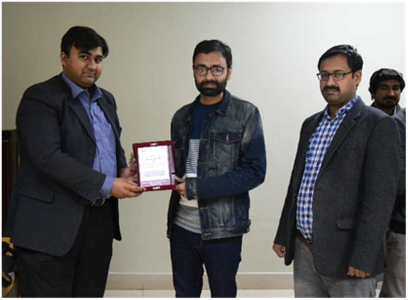 Society of Textile Weavers arranged a seminar on the title "Marketing trends of Denim in different Countries" on Thursday, January 11, 2018 at NTU. Mr. Muhammad Muzammal Saif, Deputy Manager US Denim Lahore shared his experiences and views about the field with the students of weaving. At the end, Mr.Hassan Iftekhar, lecturer weaving department presented the shield to the honorable speaker.