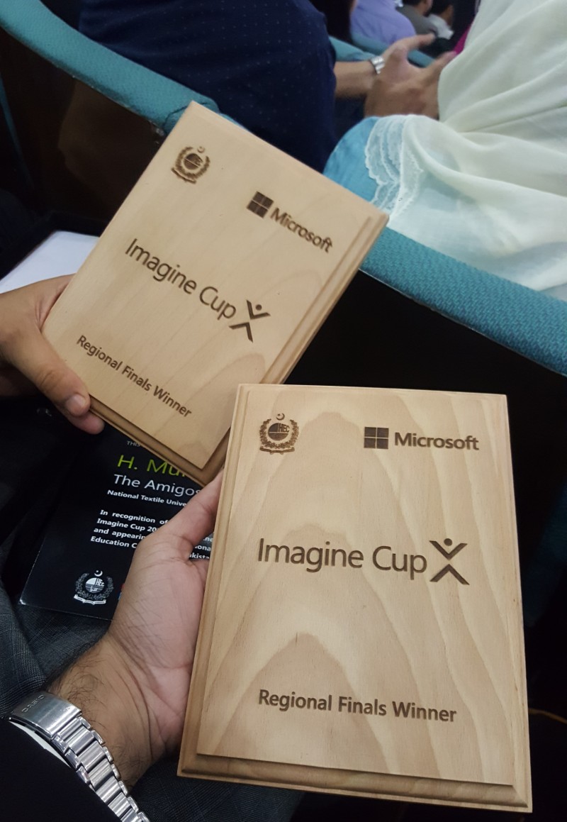 Imagine Cup 2018 Pakistan started with over 200 submissions initially, from which 110 projects were selected for further evaluation across Pakistan. 25 projects were selected for National Finals in Islamabad. NTU DCS team working under the supervision of Dr. Muhammad Asif were also selected from Punjab/Lahore region. Online evaluations (30 minutes each) took place via skype conference call with hosts and judges where presentations and demos were shown along with questions from the judges. These 25 teams were then called to HEC Islamabad where projects were displayed and judges/guests and public visited the stalls.