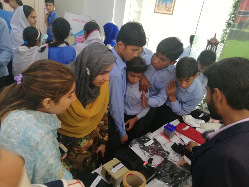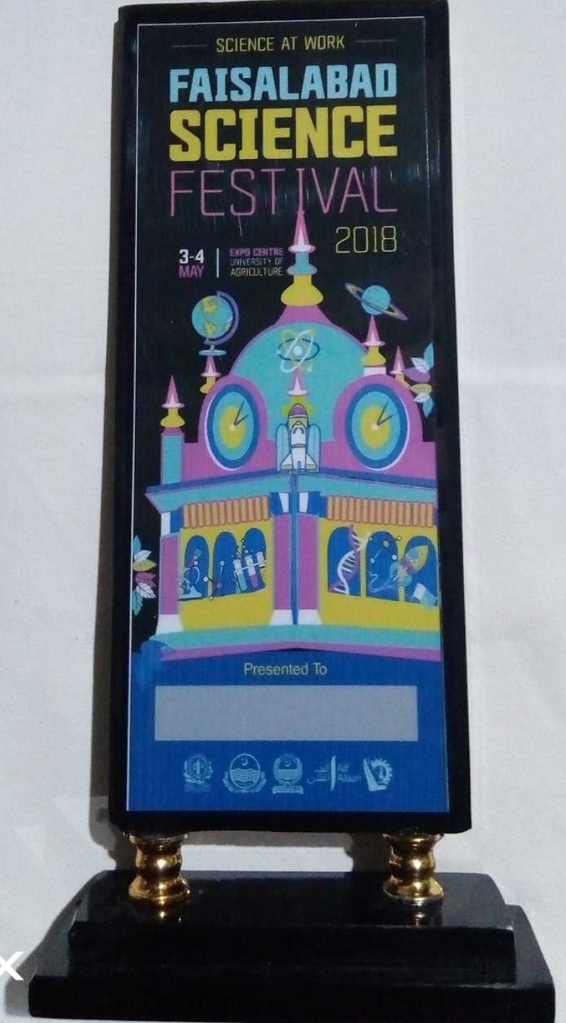 All Faisalabad Science Festival was arranged by City Dist.Govt. Faisalabad. Students from all Faisalabad schools, colleges and universities participated and displayed their technical projects. Students from Knitting department also participated and secured best project award in University Category Projects.The project was of Mr. Hammad Saeed and Mr. M. Junaid who worked on Electrically Heated Gloves.
