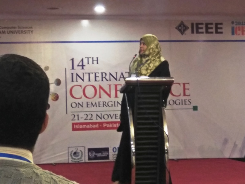 Ms. Sidra Nasir (MS Scholar of the department of Computer Science, NTU) presented her research article in the 14th International Conference on Emerging Technologies (ICET-2018) organized by Quaid-i-Azam University, Islamabad, HEC and IEEE. Ms. Sidra is a recent graduate of department of Computer Science under the supervision of Dr. Muhammad Asif (Assistant Professor/Chairman).