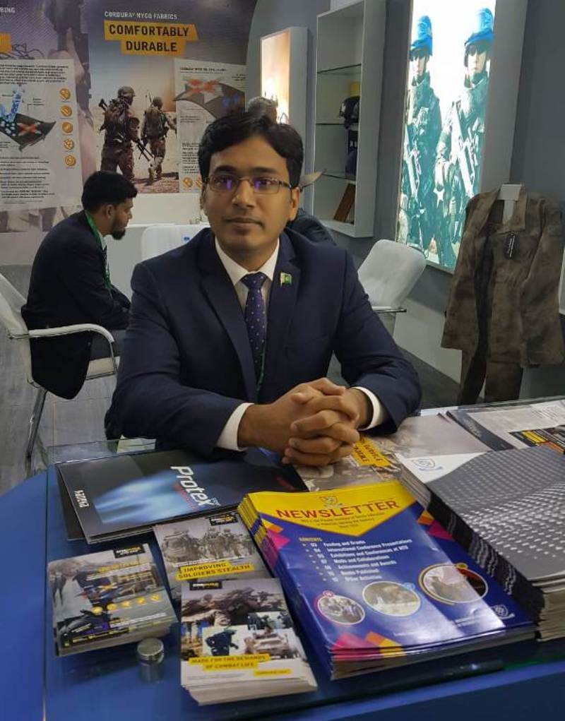 TDF-110 project "Light weight bullet proof vest made from 3D comingled woven thermoplastic composite and novel auxetic woven fabrics" got special attention at IDEAS 2018. Delegates from Pakistan armed forces, Pakistan aeronautical complex and Pakistan ordinance factories visited the stall.