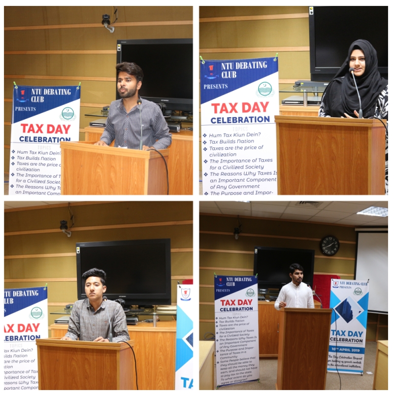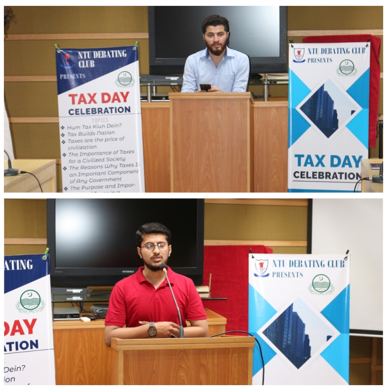 As a forerunner part of Tax Day celebrations, NTU Debating Club arranged a tutorial and debate for the purpose to increase tax awareness amongst new generation. The event was presided by Ms Asma Iqbal (Convener NTU Debating Club) and M Afraz Alam (President, NTU Debating Club).