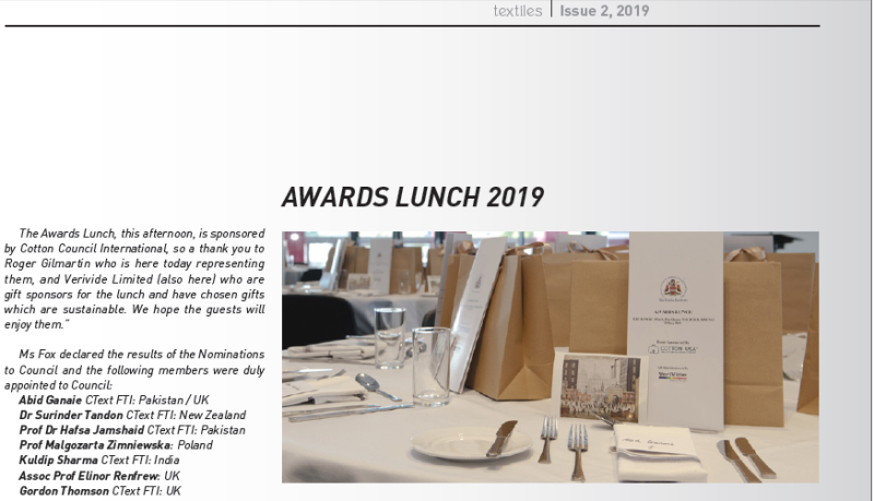 The Textile Institute (TI) is a unique organization in textiles, clothing and footwear. It was incorporated in England by a Royal Charter granted in 1925 and is a registered charity. The Institute has individual and corporate members in up to 80 countries, the membership covers all sectors and all disciplines in textiles, clothing and footwear. The Council is the Institute’s international governing body, and is composed of nominees from the duly constituted Section, National & Regional Committees and an equal number of members elected by the membership at large. The constitution of Council and the conduct of elections to it are closely governed by the Institute’s Charter and Byelaws. Three degree programs offered at National Textile University are recently accredited by The Textile Institute. Dr.Hafsa Jamshaid C Text FTI has been appointed as Textile Institute (UK) council member in 109th Annual General Meeting held on May 2019.