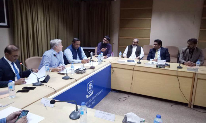 The first general meeting of Textile Industrial Advisory Board (TIAB) was held on October 25, 2019 in Video Conference Room under the Faculty of Engineering and Technology (FET) at National Textile University, Faisalabad. Prof. Dr. Tanveer Hussain, Rector NTU chaired the meeting and Co-Chair were Dr. Yasir Nawab, Director FET, and Mr. Rana Sohail Ahmad, CEO, Shan Associate. The purpose of this meeting was to help shape strategic directions of the University and to propose means of strengthening partnership between the University, Textile Industry and Community.