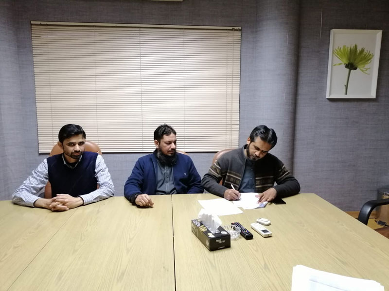 The agreement was intended to formalize the mutual interaction and to strengthen the existing relationship between the NTU and the Ahmad Jamal Textile Mills. Mr. Malik Farooq (Senior Manager Production, Ahmad Jamal Textile Mills) was also present at the time of signing the Research Agreement.