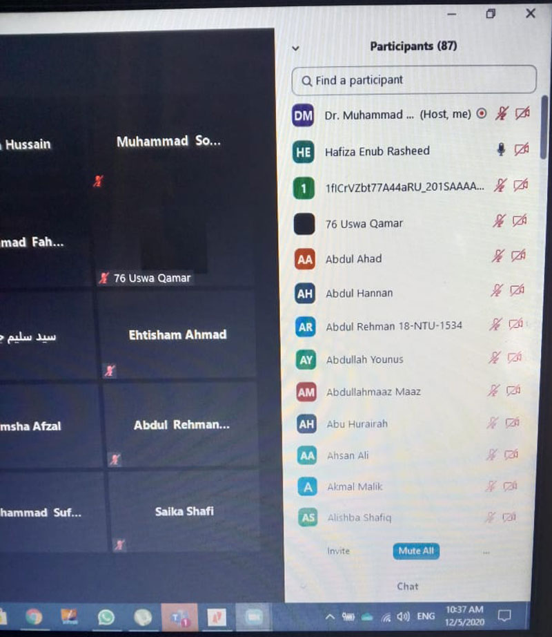Quran Society, National Textile University Faisalabad, Pakistan arranged an International Mehfil-e-Naat seminar on 5 December 2020. Participants were from Saudi Arabia, Qatar, India, and Pakistan. Maulana Azad National Urdu University Hyderabad, Bright Future International Pakistani Institute Doha, Qatar, The Islamia University of Bahawalpur, Allama Iqbal Open University Islamabad, G C University Faisalabad, F C University Lahore, Lahore College University for Women Lahore were participated. Mr Kashif Mehmood was the Guest of honor. Prof. Dr. Tanveer Hussain was the Conference Patron. Dr. Zafar Javed Director Faculty of Humanities and Social Sciences was Conference Chair. Dr. Muhammad Umair, Director of Student Affairs was the organizer. Dr. Muhammad Yaseen was the Convener of the Quran Society and Abdullah Younus as deputy convener. Dr. Zafar Javed spoke in his welcome speech about the importance of love of Prophet Muhammad PBUH and Prof. Dr. Tanveer Hussain, Rector NTU highlight the role of Muhammad PBUH as model for young generation. He expressed his concluding words with the verses of Allama Muhammad Iqbal which indicate the love of Prophet Muhammad PUBH.