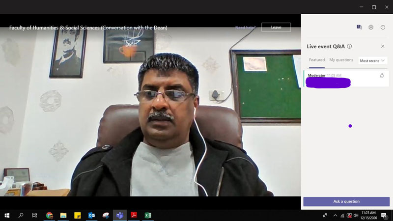 Covid-19 has forced universities across Pakistan, and the world indeed, to suspend physical classrooms and shift to online classes. Advisor Students Office arranged on-line interactive sessions through which students directly have a conversation with Worthy Rector and their respective Deans/Directors about online education, studying from home also shared their contemporary study issues related to distractions and time management. Moreover, students discussed course expectations and lack of in-person interaction to join these online sessions. This way university has stepped forward to address student’s queries and more resilient in hard knocks.