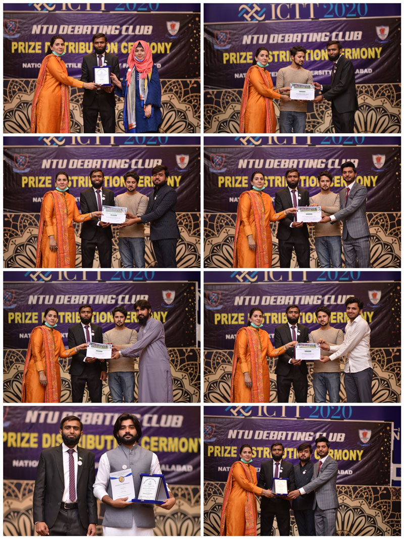 NTU debating club organized "Prize Distribution Ceremony" of online events arranged during session 2020-21 (by following SOPs of Covid-19) on 17 March, 2021. Prizes were distributed by Assistant Director Students Affairs Ma’am Nadia Shamim and President debating club Muhammad Anees Islam.