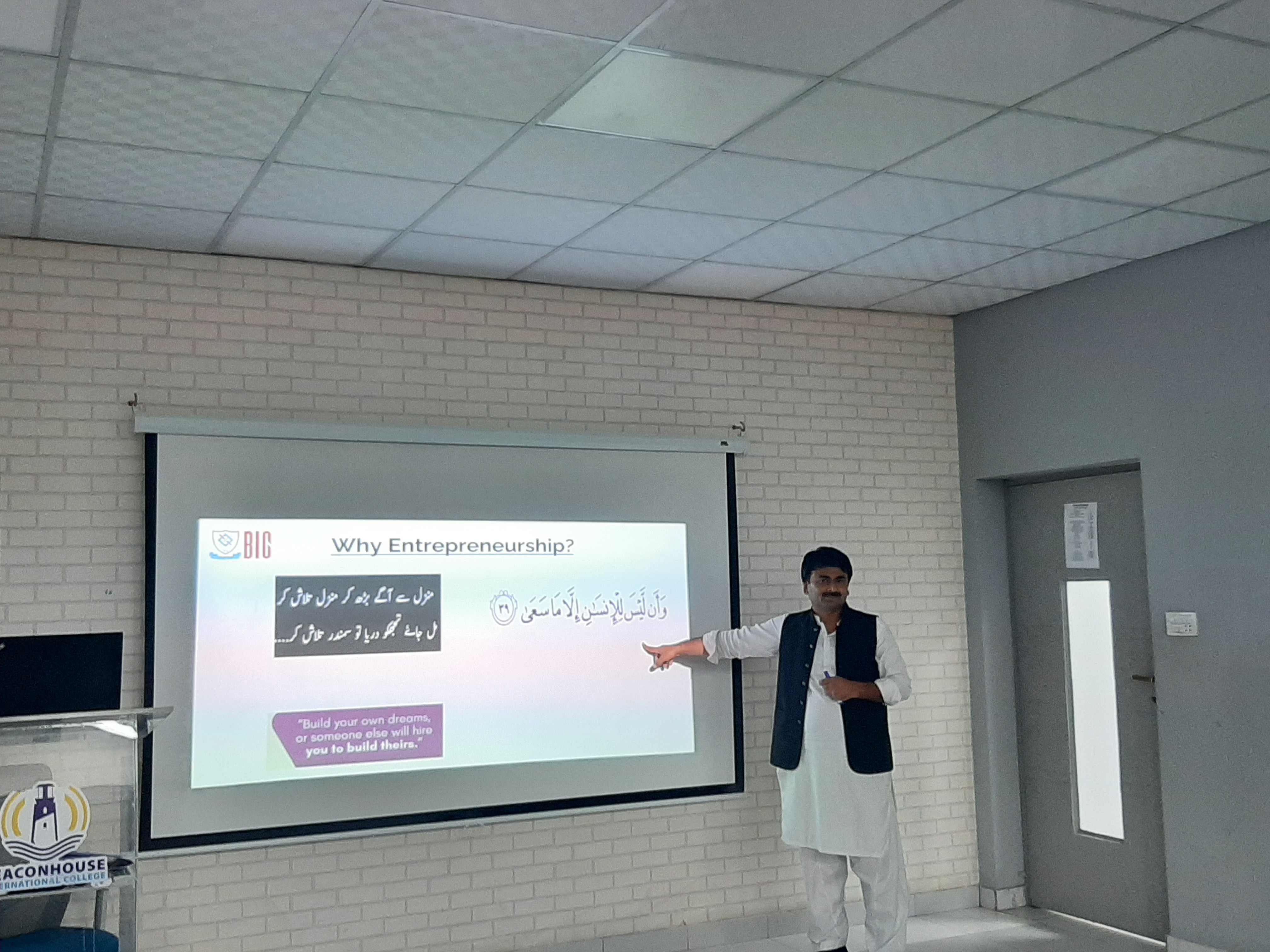 Beaconhouse International College (BIC), Faisalabad invited Mr. Asif Bashir, Manager NTU-BIC. He conducted an entrepreneurial session and talked about the essentials of entrepreneurship.