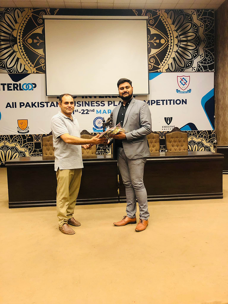 later on Dr.Muhammad Tahir Hussain Dean SOS and Dr.Asif Habib HOD DCS presented shield to Mr.Awais Basharat