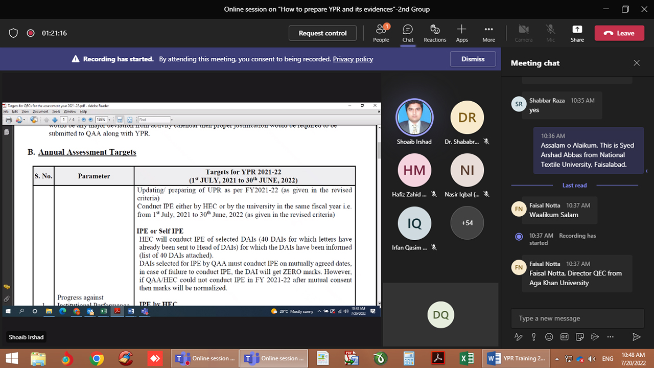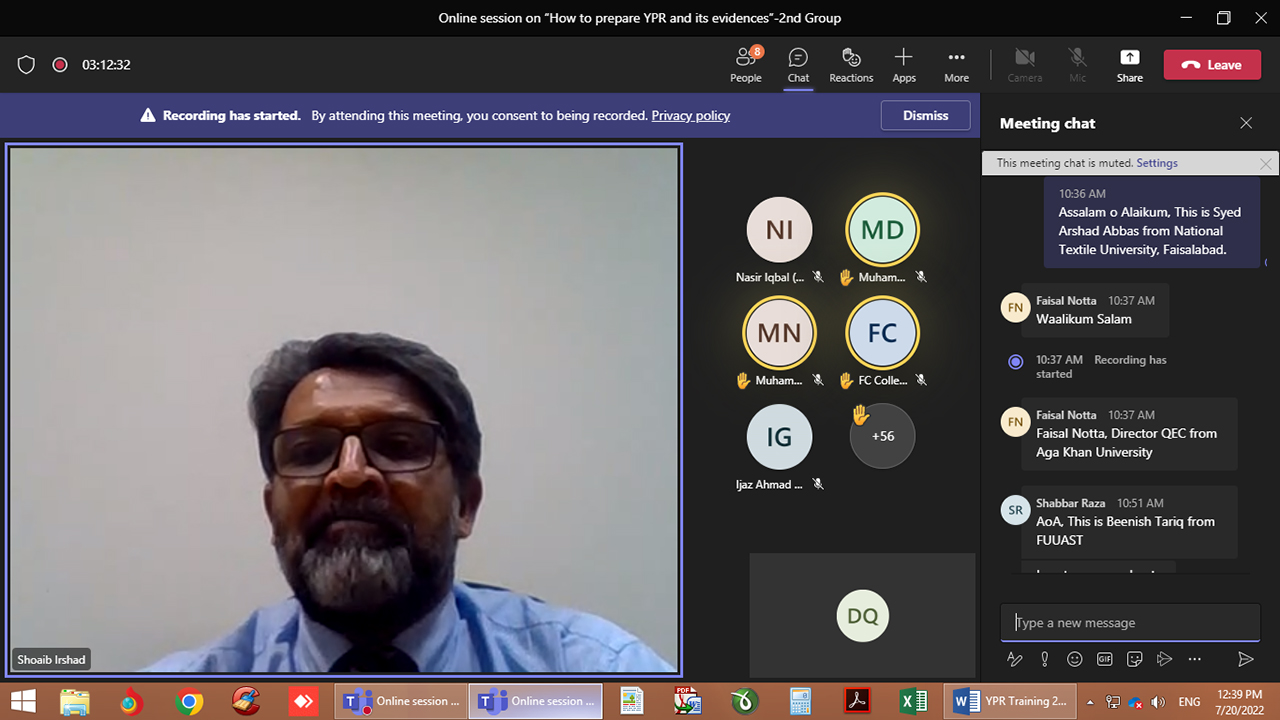 Quality Enhancement Cell Team of National Textile University attended QAA Training regarding Yearly Progress Report (YPR), Mr. Shoaib Irshad was the resource person. In his presentation he covered all areas of the YPR in detail. The session was ended after the question answer session.