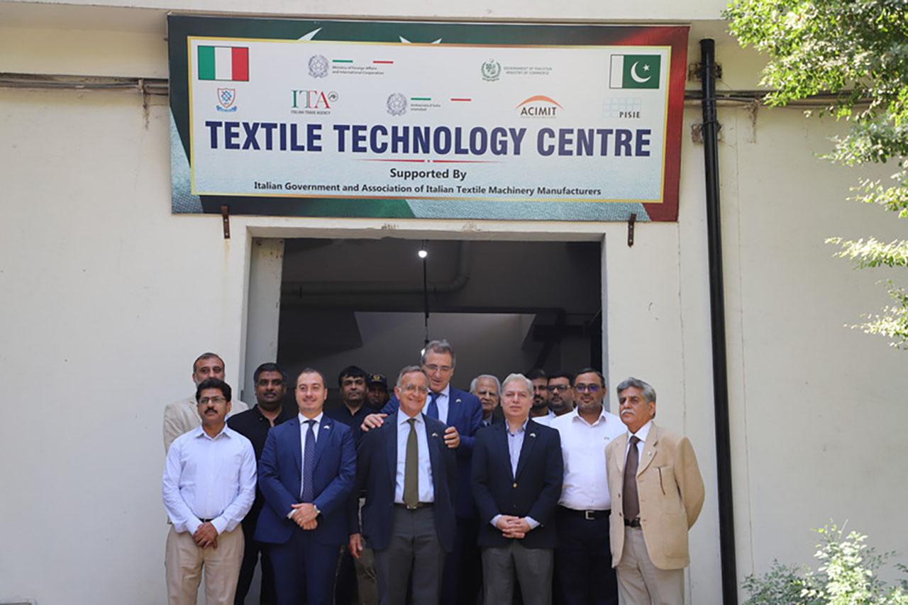 Dr. Federico Pellegata, DG ACIMIT, Dr. Alex Zucchi President Association of Italian Textile Machinery Manufacturers (ACIMIT) and Dr. Alessandro Lamura Deputy Trade Commissioner - Dubai (ITA) visited Italy-Pakistan Textile Technology Center established at National Textile University to review the progress of the center on October 18, 2022. Prof. Dr. Tanveer Hussain Rector NTU gave a comprehensive presentation regarding university programs, facilities, ongoing projects and the activities performed at NTU. The Representatives of ACIMIT and ITA appreciated the progress of Italy-Pakistan Textile Technology Center and were impressed by the research and development activities at NTU.