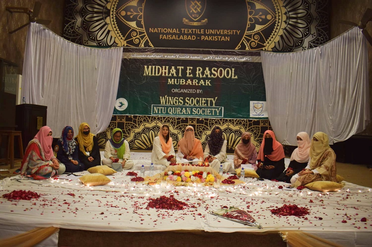 WINGS Society with the collaboration of NTU Quran Society arranged a “MIDHAT E RASOOL" conference in the respect of our beloved Prophet Muhammad (ﷺ). The event was held on November 10, 2022. The chief guests for the event were “Mrs Ayesha Siddiqah , Chairperson Al-Burhan International and “Miss Kiran Shehzadi", Head of Naujawan Sisters. The girls and female faculty was invited. The students participated very humbly in reciting Naat’s and sent Durood-e-Pak to Prophet ﷺ in their harmonious and soulful voices.