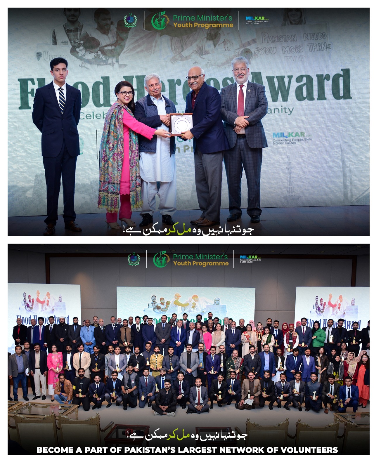 Congratulations to the dedicated team of NTU including all schools and students’ societies SDG, community service and especially Faisalabad Business School. National Textile University has won the Prime Minister's Heroes Award for volunteerism, community and flood efforts. Around fifty HEIs were awarded for this effort. NTU received an award among all public-private HEIs. Mr Muhammad Umer Ashfaq President 22-23 of student’s society along with Ms Nadia Shamim Asst. Director Students Affairs received the award on behalf of NTU from Special Assistant to Prime Minister on Youth Affairs Ms Shaza Fatima Khawaja, Chairman HEC Pakistan Dr. Mukhtar Ahmed along other PM office representatives and Diplomatic dignitaries on 5th December 2022 in a special ceremony organized by MilKar in collaboration with Prime Minister’s Youth Programme and Higher Education Commission.