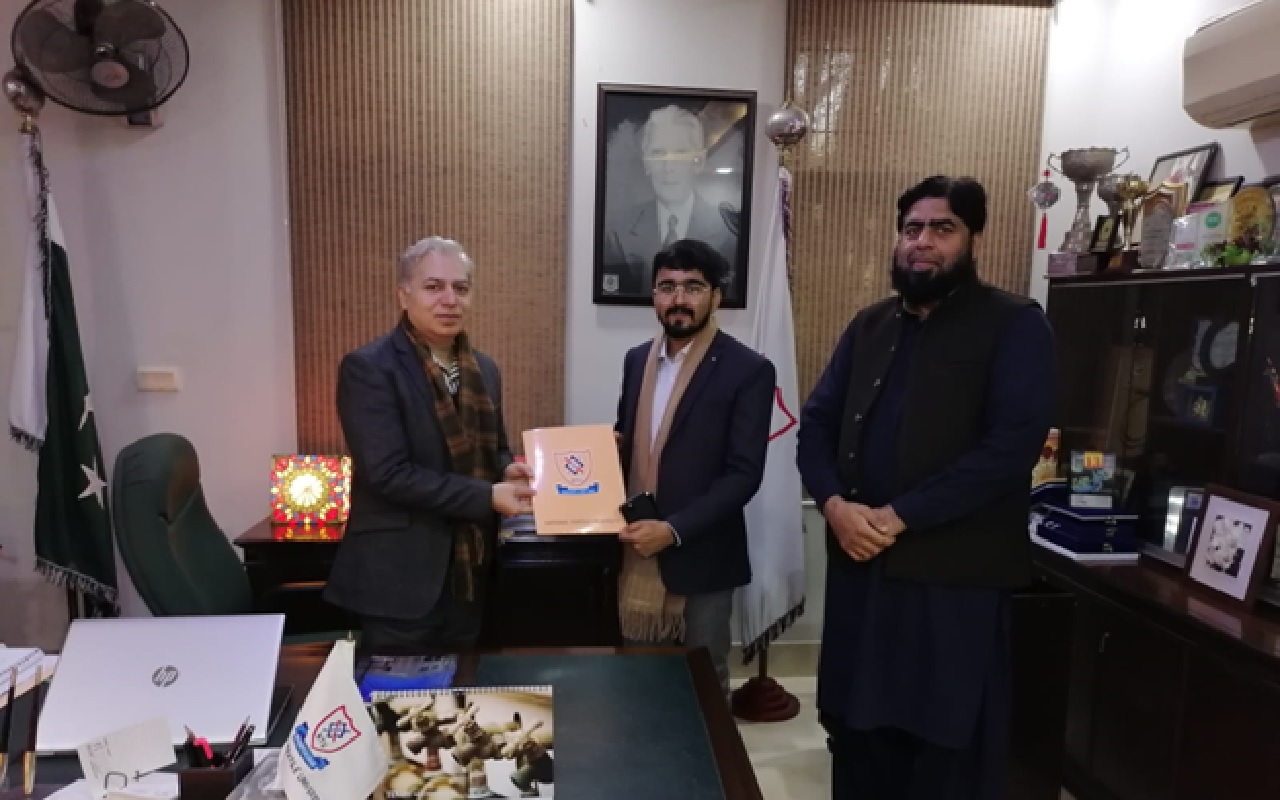 Earlier Mirza Muhammad Usman received by worthy reactor Dr. Tanveer Hussain, Chairman DCS, and Convenor IT Society DR. Muhammad Abdul Qayum and MOU ceremony held in reactor office.