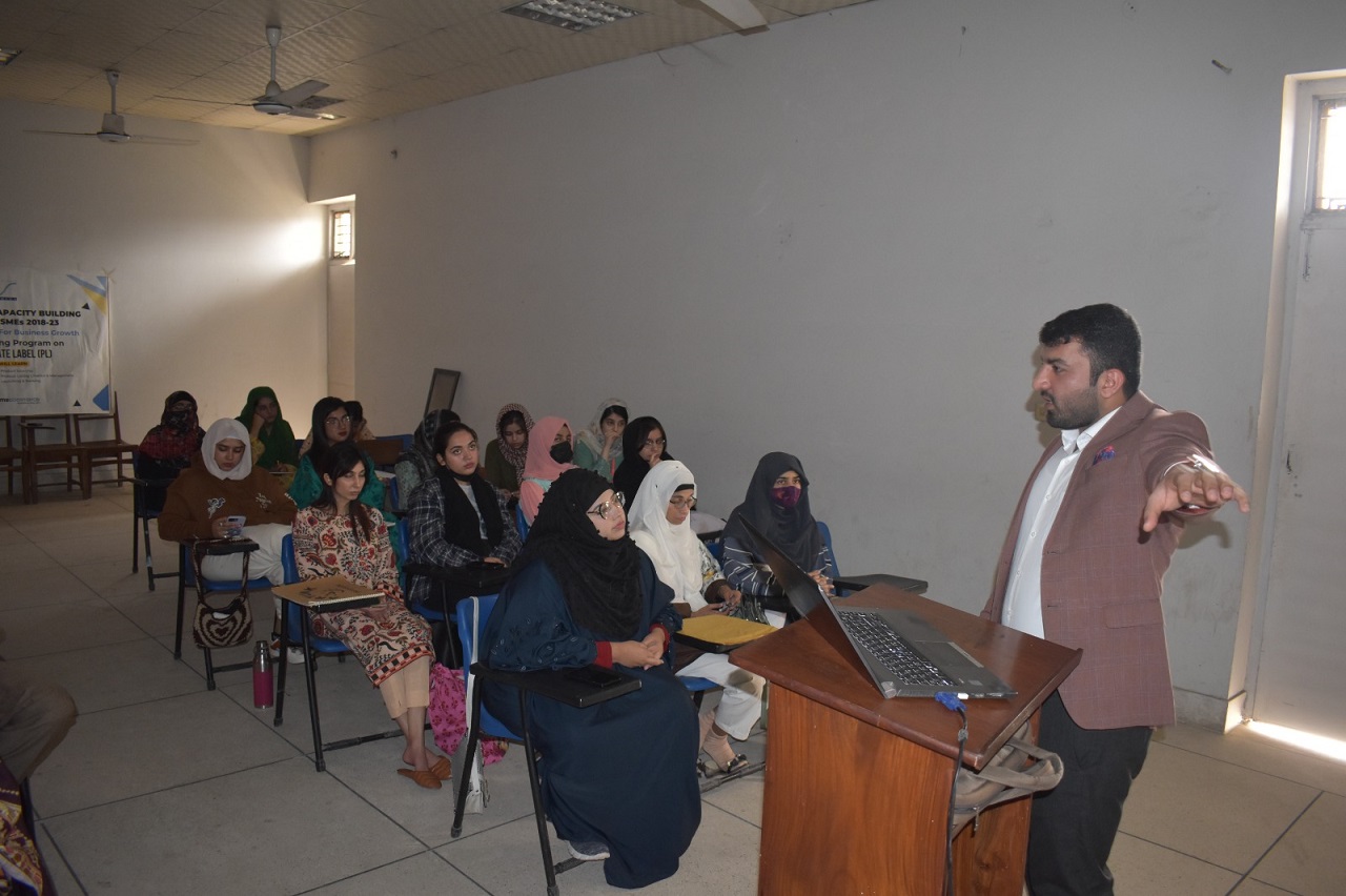 National Textile University, Business Incubation Center arranged a training on “Amazon Private Label” for students of School of Arts and Design (SOAD) on 16-02-2023. The trainer, Mr. Kamran Shehzad discussed the opportunities on amazon in detail.