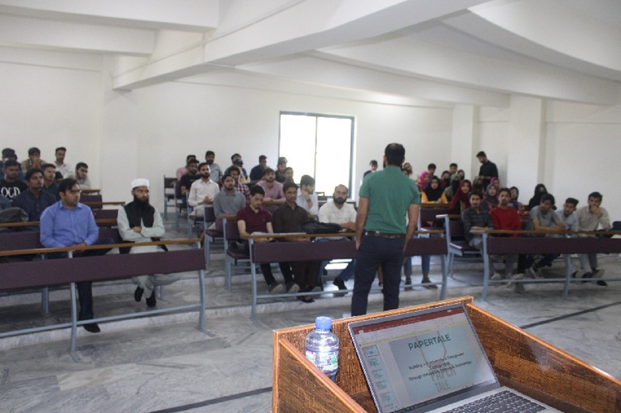 Society of Textile Knitters arranged a session on 06-03-2023 where Speaker Mr. Yasir Rasool from Outso Wearables addressed the students regarding the career development in the sustainable textile. He addressed the students regarding Papertale and its way of implantation in the Pakistan. Students got a chance to enhance their knowledge regarding Papertale and issues that are being faced by Pakistan with regard to Sustainability.
