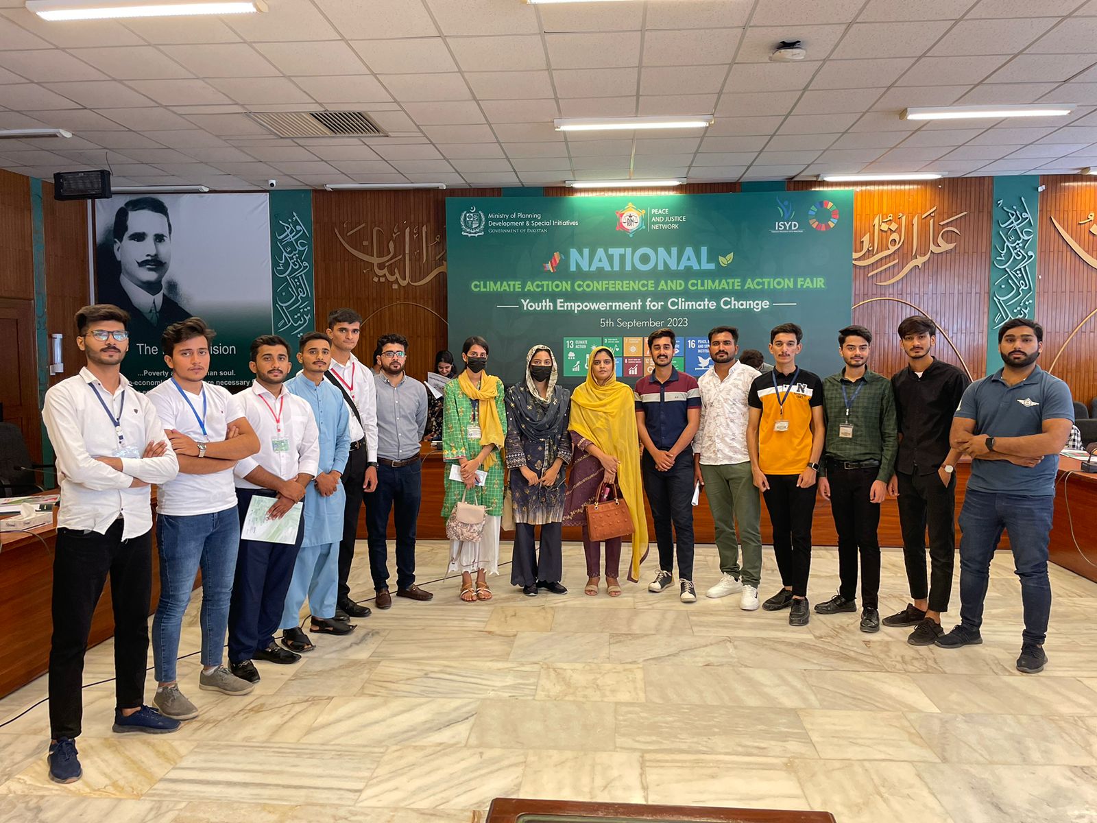 Members of the Society for Sustainable Development Goals (SSDG), also well known as 17 SDGs' Youth Ambassadors attended National Climate Action Fair on 5th September 2023. "๐๐๐ญ๐ข๐จ๐ง๐๐ฅ ๐๐ฅ๐ข๐ฆ๐๐ญ๐ ๐๐๐ญ๐ข๐จ๐ง ๐๐จ๐ง๐๐๐ซ๐๐ง๐๐ - ๐๐จ๐ฎ๐ญ๐ก ๐๐ฆ๐ฉ๐จ๐ฐ๐๐ซ๐ฆ๐๐ง๐ญ ๐๐จ๐ซ ๐๐ฅ๐ข๐ฆ๐๐ญ๐ ๐๐ก๐๐ง๐ ๐" organized by Peace and Justice Network at Ministry of Planning, Development and Special Initiatives, Pakistan Secretariat Islamabad. Dr. Faiza Anjum, convener of SSDG/focal person of SDGs' Youth Ambassadors, and Mr. Ahsan Ahmad attended the fair along with the Ambassadors.