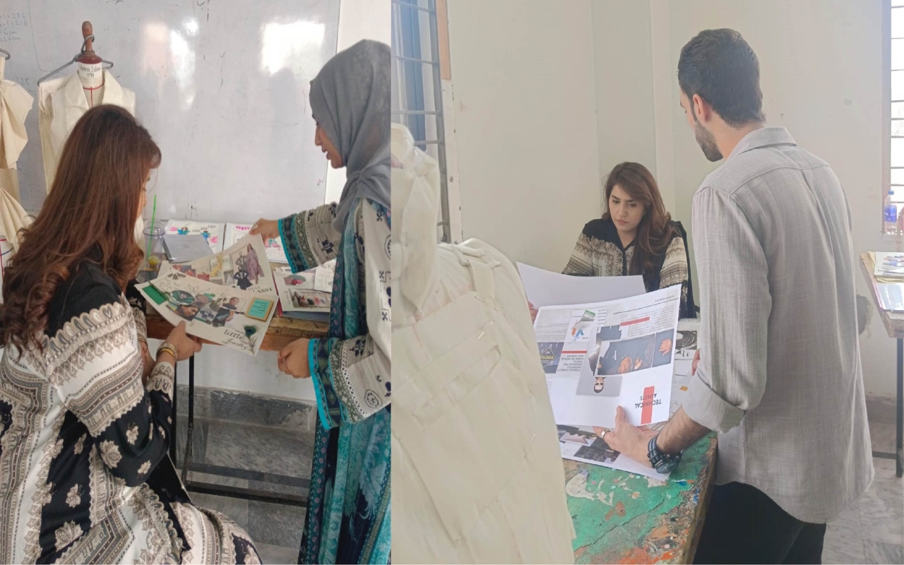 An informative talk was organized by Fashion design final year supervisors Mr.Shahid Zaheer, Ms.Sidra Mir and Ms.Zunaira Saleem at School of Arts & Design National Textile University, engaged in a fascinating dialogue with seasoned professionals Mr.Mudassir Mehmood (Program Leader Superior University Faisalabad) and Ms. Mahnoor Tariq (Fashion Faculty Roots IVY Educational Complex Faisalabad) about the latest trends shaping the fashion landscape in Pakistan and globally. From cutting-edge designs to sustainable practices, this insightful talk delved into the dynamic world of fashion, offering valuable perspectives and inspiring ideas.