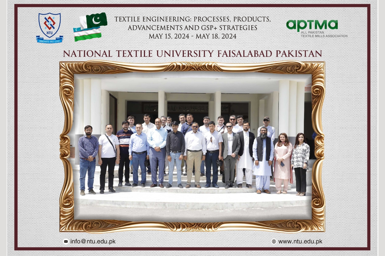From May 15 to 19, 2024, an official delegation from Uzbekistan visited the National Textile University. The delegation participated in an intensive training program focusing on "Textile Engineering: Processes, Products, Advancements, and GSP+ Strategies." This initiative was part of a collaborative effort with the All Pakistan Textile Mills Association (APTMA) aimed at fostering joint research and enhancing knowledge dissemination in the field of textile engineering.
